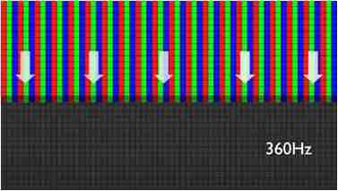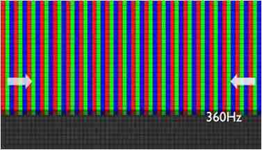 传统液晶驱动是从左到右单向进行,,,,在画面更新速度愈来越愈快的情况下,,位于驱动线路末端的右下角区域,,,画素的闸极来不及在短时间内获得足够电压,,无法显示出正确的颜色资讯。。。 |
